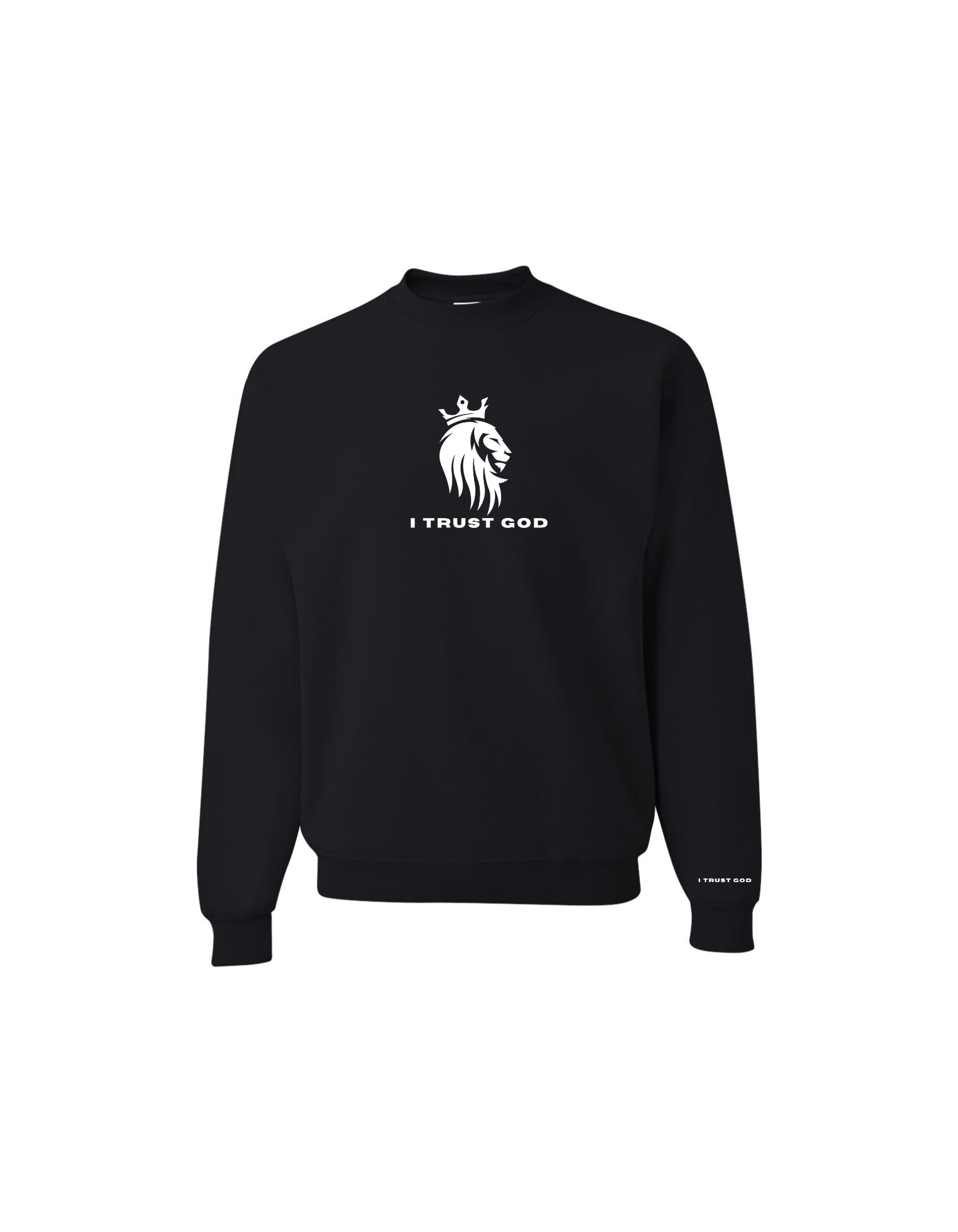 Wrap yourself in warmth and intention. The front has the “I Trust God” logo with the lion and the sleeve states boldly “I Trust God.”