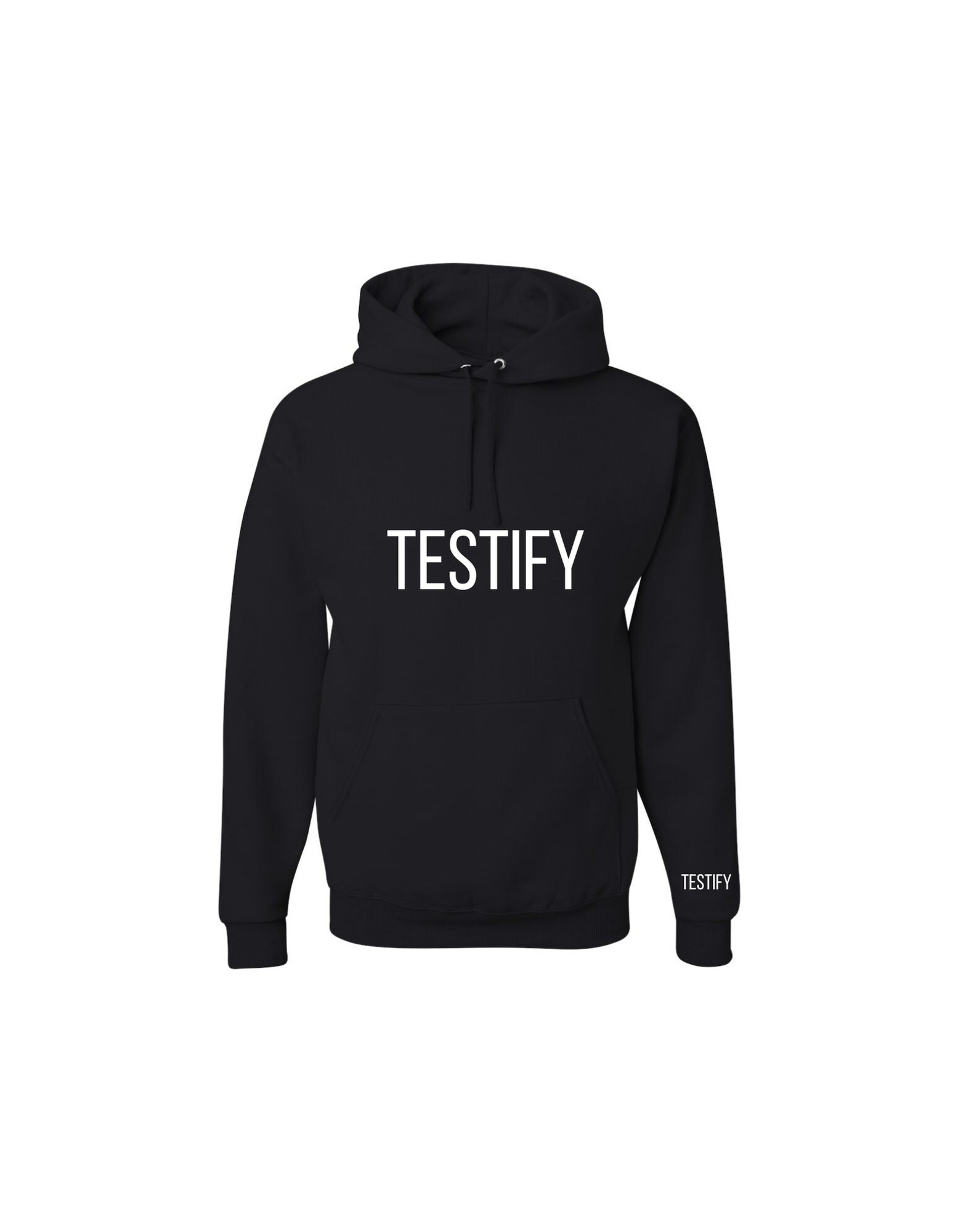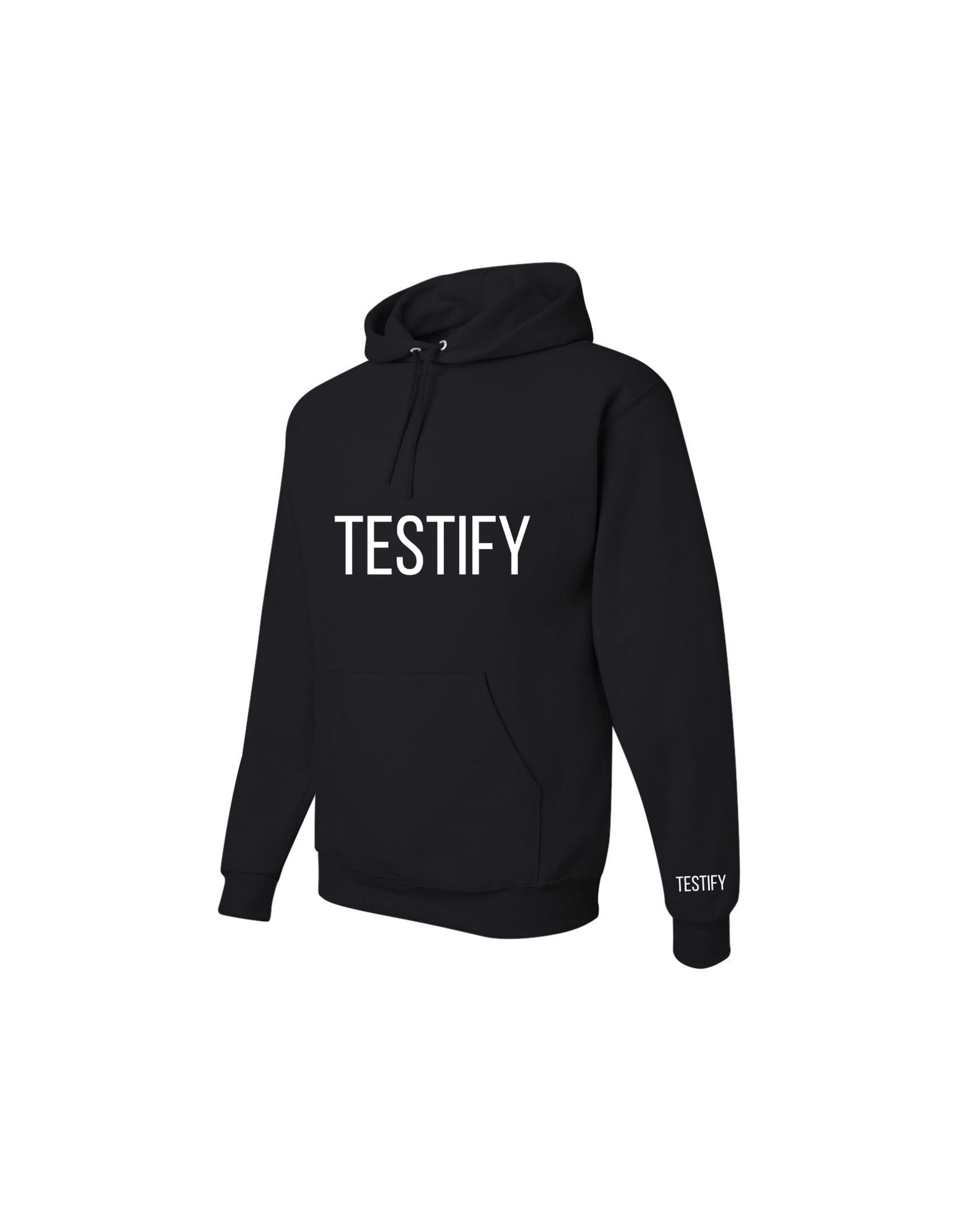 Step out in purpose and comfort. The front boldly states “Testify,” with a matching imprint on the left wrist.