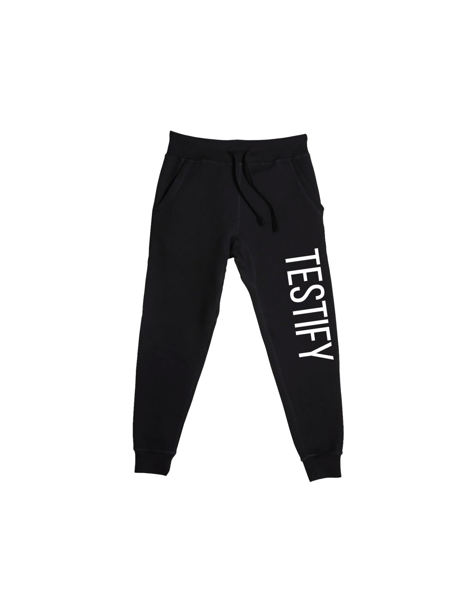Move with confidence and intention in these luxe joggers. The front boldly states “Testify."