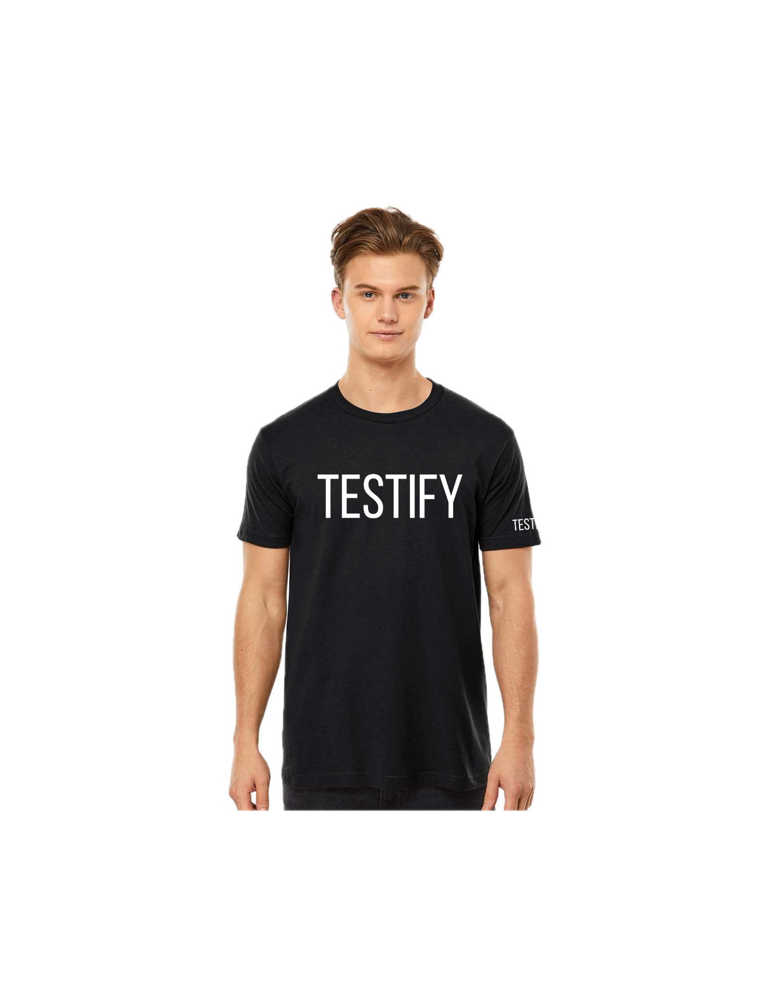 Live boldly and speak truth wherever you go. The front boldly reads “Testify,” with a matching imprint on the left sleeve.